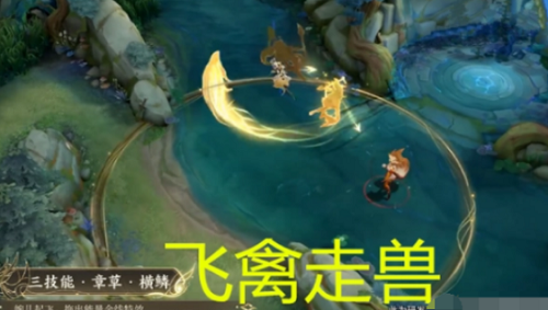 三技能婉儿起飞,拖出能量金线特效,代表万物生灵的金色万象图形特效环绕其身。所到之处,生机盎然!