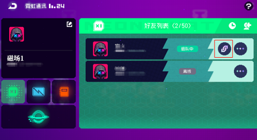 2、然后只需要在好友列表里面,点击好友右侧的这个链接按钮,就可以和好友一起联机了。