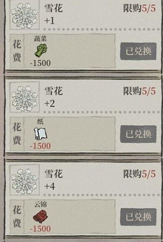 2:将生产建筑云锦织纺解锁并建造,下图是雪花的兑换图;